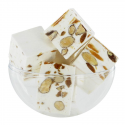 Cubes de nougat dur aux amandes moulues (25 %), sec et légèrement croquant, parfaits pour les amateurs de texture ferme.